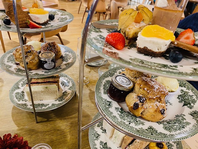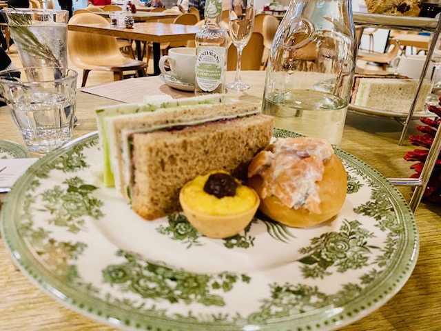 Whetting our appetites, we kicked off with a glass of Hundred Hills bubbly (an extra £14), to be precise the 2019’s Preamble No.2 from the local award-winning vineyard) and although it’s not allowed to be called Champagne as it hails from England, you’d never know the difference, the fizz really hitting the spot, making it feel even more of a special occasion as we awaited our tier of afternoon delicacies.