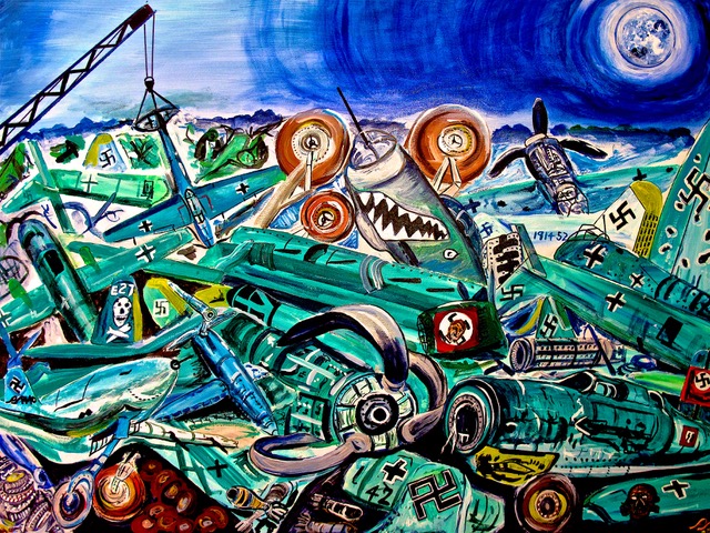 The painting ‘Der Friedhof’ is Paul’s homage to Paul Nash, and depicts a WW2 aircraft dump, one of which Nash painted in Oxfordshire, which stretched from the Garsington Road almost to Horspath