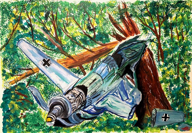 The painting ‘Der Friedhof’ from the collection is Paul’s homage to Paul Nash, and depicts a WW2 aircraft dump, one of which Nash painted in Oxfordshire, which stretched from the Garsington Road almost to Horspath.