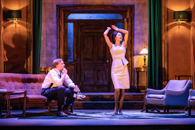 So how does this come about? Martha, the frustrated housewife and unhinged daughter of the college president, and her history professor husband George, meet younger couple Nick (Ben Hall) and Honey (Leah Haile) at a faculty party, and ask them back for a drink.