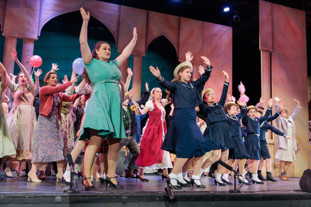 Sarah Leatherbarrow as Mother Abbess is something to behold as, alone on stage, she holds us all in the palm of her hand as she vibratos her way through Climb Every Mountain. Does she hit that final high note? Of course she does.