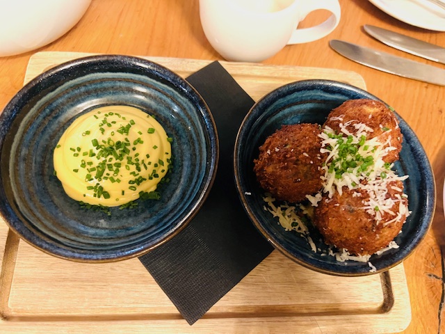 But first the croquettes, which certainly set the scene – piping hot, delicious, crunchy and crispy on the outside, and then soft and unctuous with cheese and leek within, dipped in the truffle mayonnaise, topped with parmesan and tiny, chopped chives. We can still remember them.