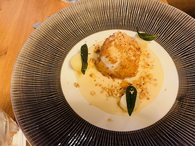 The spongey soufflé needs little introduction, framed by the chowder dotted with tiny cubed, potatoes, and then the crispy duck egg lived up to expectations, the crunch of the nut and strength of sage set against the delicate veloute and the bounce of egg, the yolk dribbling out so satisfactorily when sliced through.