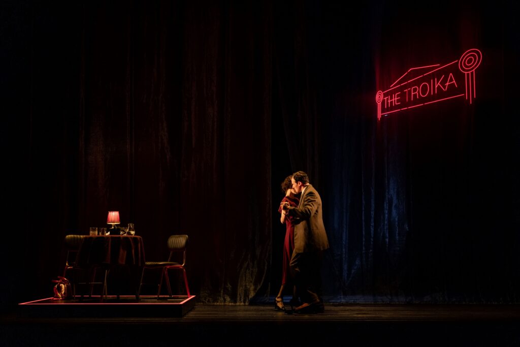 Author Nancy’s matriarchal bent, stoic loneliness and snappy dialogue is encompassed beautifully by Kirsty Besterman, while Debs, the future Duchess of Devonshire, (played by Flora Spencer-Longhurst) dreams of marrying her duke, both fiercely independent and caught in the middle of the family feud.