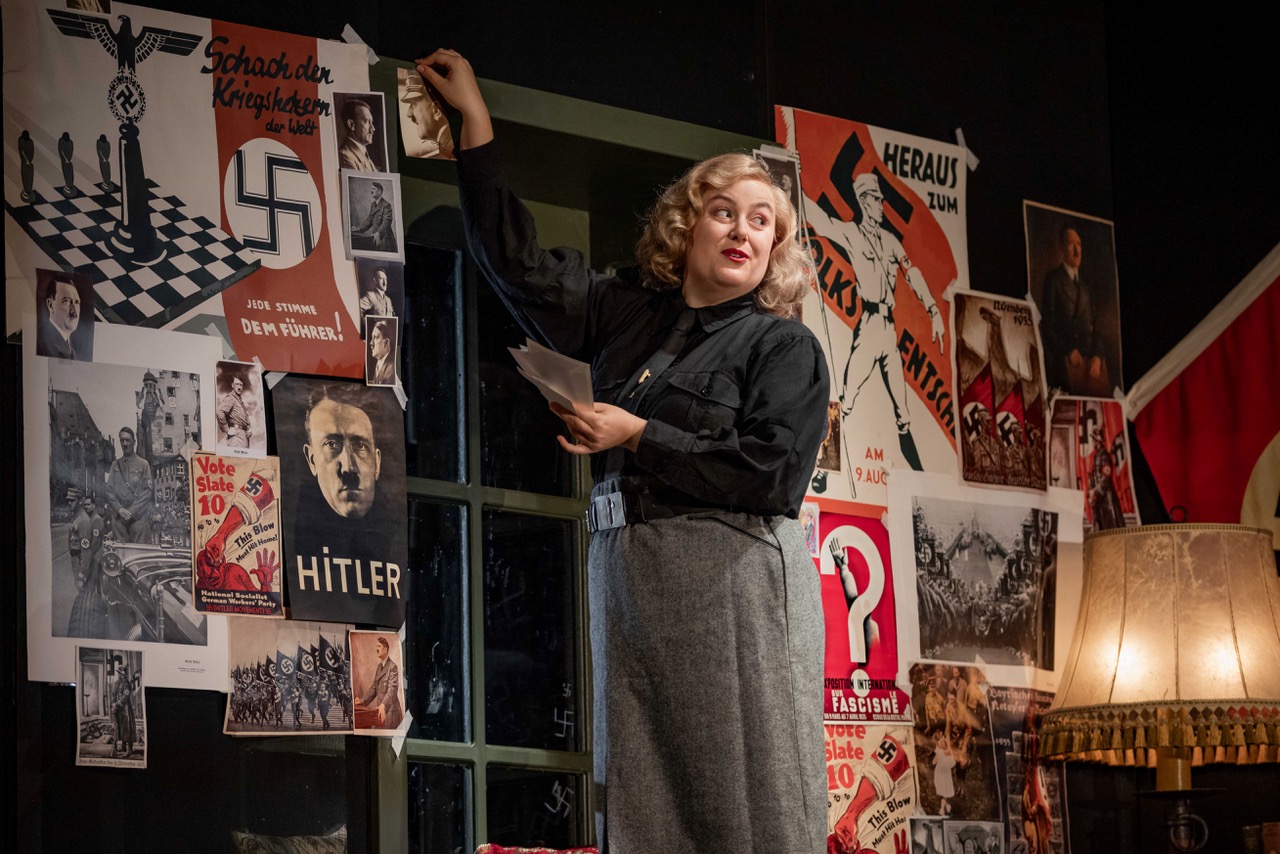 The script switches between eras, harking back to happier times when the sisters co-existed happily at home, although their extreme views are already in evidence – Decca and Unity’s bedroom split down the middle, one side decorated with Nazi swastikas the other with Russian sickles.