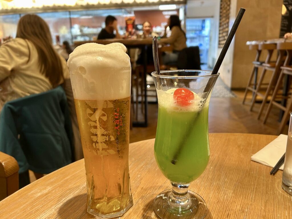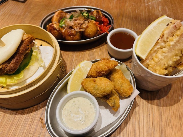 Parking ourselves down and immediately ordering some of the exciting sounding drinks, our Japanese journey began – the Kissaten influenced melon cream soda float – as found in retro coffee shops all over Japan – with ice cream and a maraschino cherry – which was a garish bright green and perfect for those with a sweet tooth. The Doburoku Yuzu Pina Coladayo – a Japanese twist on a Pina colada, made with sake, also went down a treat, the ceremonial pouring from the ceramic bottle into tiny cups much more exciting than your bog standard cocktail, and perfect for sharing.