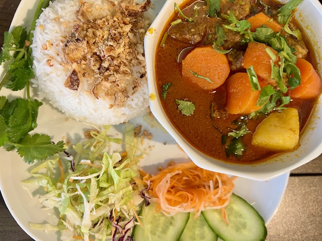 The beef stew and rice (£16.50) a Cay Khe special of slow cooked beef stew with rice, was not something we’d tried before, but more of a curry full of chunks of carrot and potato, the meat tender and obviously cooked for hours, the rice topped with crispy onions and peanuts.
