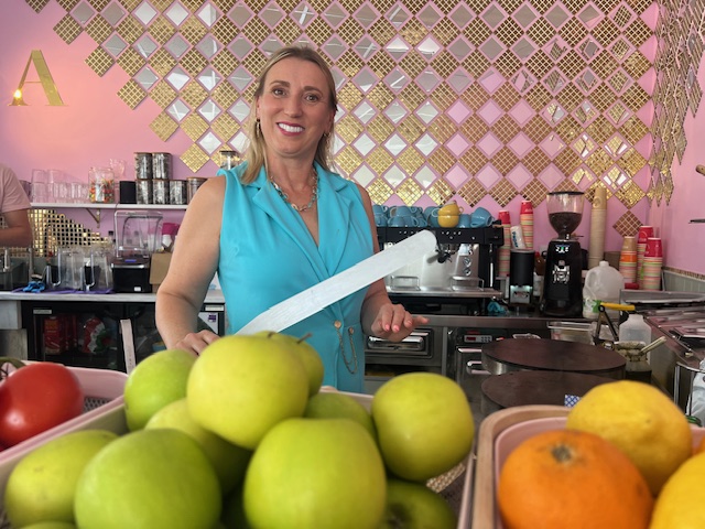 We’re chatting at ‘Alex’s‘ in Park View, the surrounding tables full of families eating crepes and drinking milkshakes, friends catching up, and locals enjoying a cup of coffee snd a piece of cake, as we reflect on how we first met when Alex opened juice bar Squeeze in Woodstock 15 years ago.