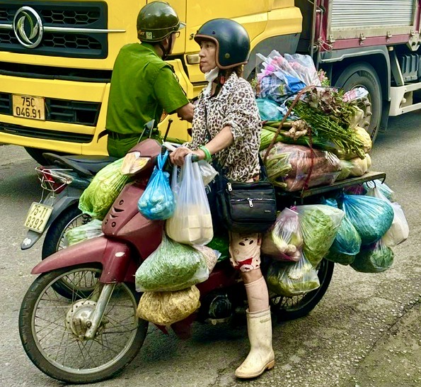 Motorbikes were the next day’s form of transport, each with its own enthusiastic driver, as we wound our way past the Tiger and Elephant Arena, an ancient relic of the Nguyen Dynasty akin to a gladiatorial amphitheatre, though a local incense-making village, to the Imperial Citadel and Forbidden City which houses a theatre, parks and concubine residences, pagodas and halls and is a UNESCO World Heritage, then a dragon boat down the Perfume River, and the Dong Ba Market.
