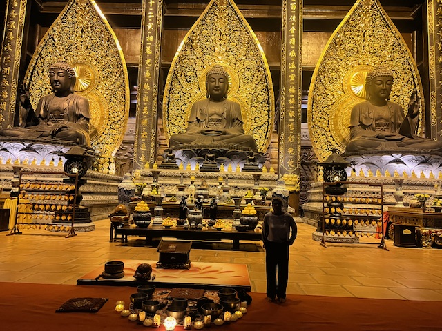 The meditation master was on hand with his impressive collection of gongs to lead us in a bell meditation in the Hall of the Three Buddha, something we’d never tried before, but certainly the right place to start, the sounds echoing around the huge sanctified space. Peace indeed.
