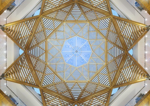 View of the dome in the Great Hall, Stephen A. Schwarzman Centre for the Humanities, University of Oxford. Photograph Hufton + Crow