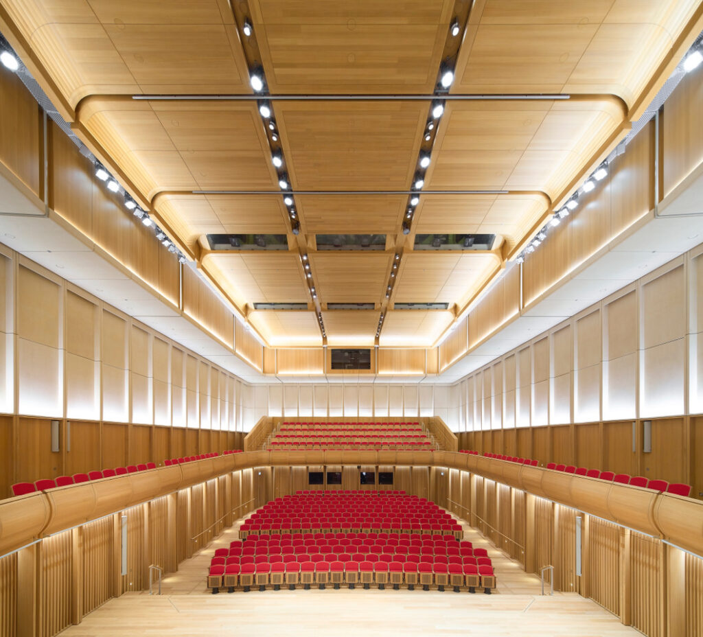 View of the Sohmen Concert Hall, Stephen A. Schwarzman Centre for the Humanities, University of Oxford. Photograph Hufton + Crow